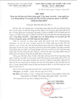 Phòng KHCN kính gửi Quý Thầy/ Cô thông tin  và thư mời tham dự Hội thảo Ứng dụng Airocide trong bảo quản và chế biến nông sản thực phẩm tổ chức tại Tp.HCM ngày 09/12/2016